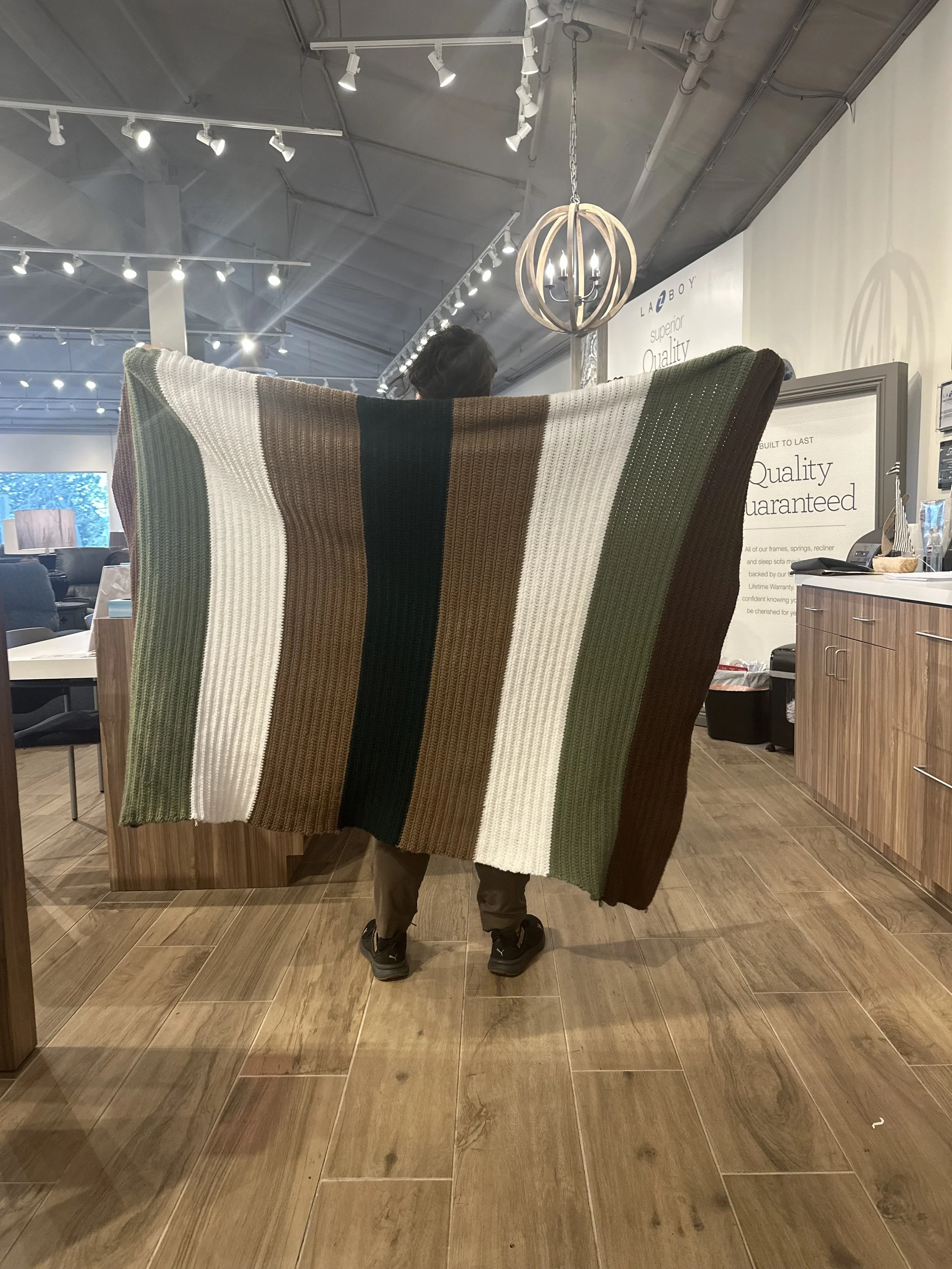 All our blankets are hand made with love and care. You can specify the size, crochet stich, color, style, materials, and other options. Our blankets usually only take about 3 days to be made and are all hand made by our skilled artisan Cory.